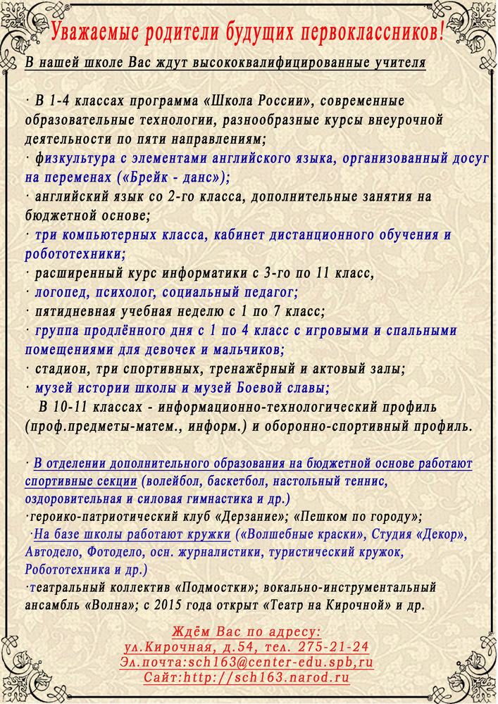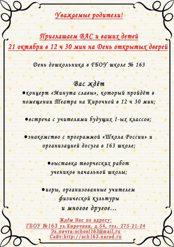 Приглашает школа №163 Центрального района